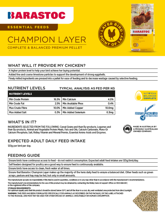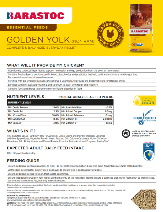 Barnyard Chook Pellet, Reid stockfeed, 20kg