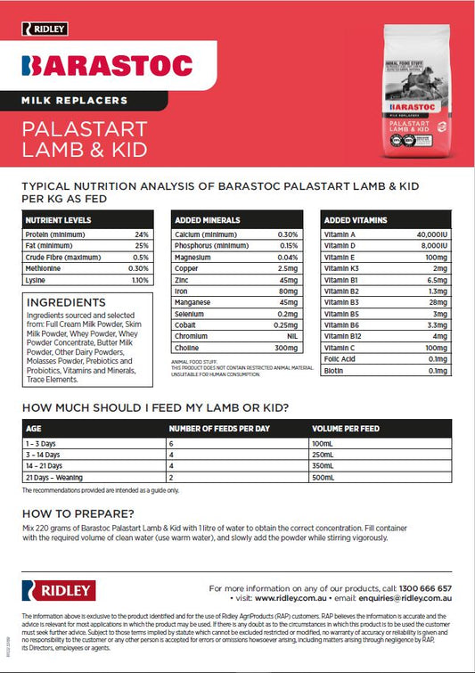 Barastoc Palastart Milk Replacer Lamb and Kid 10kg