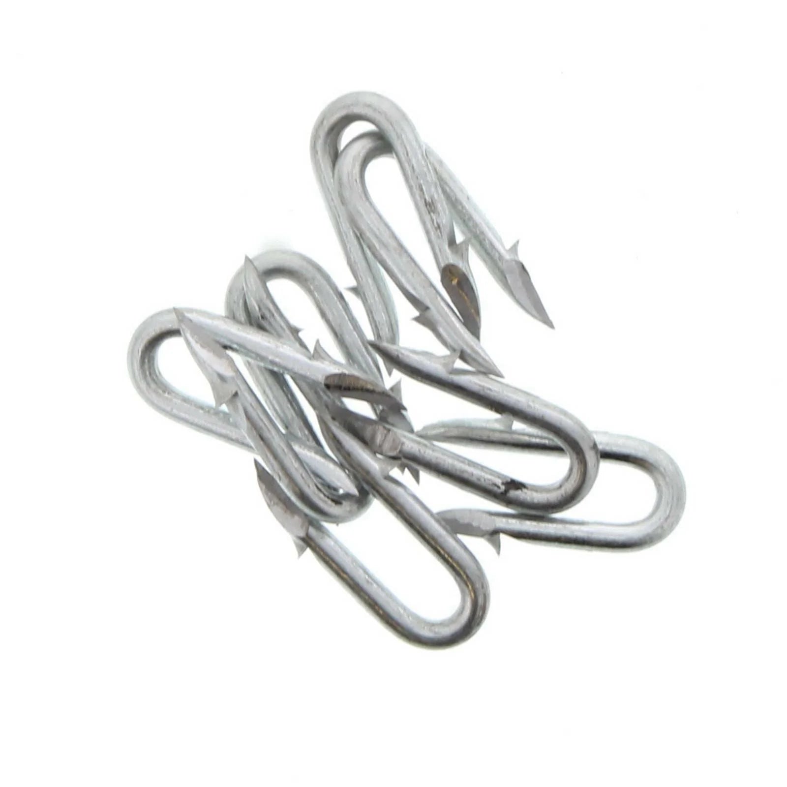 Staple radius/curve designed to hold wire without cutting or damaging the wire.