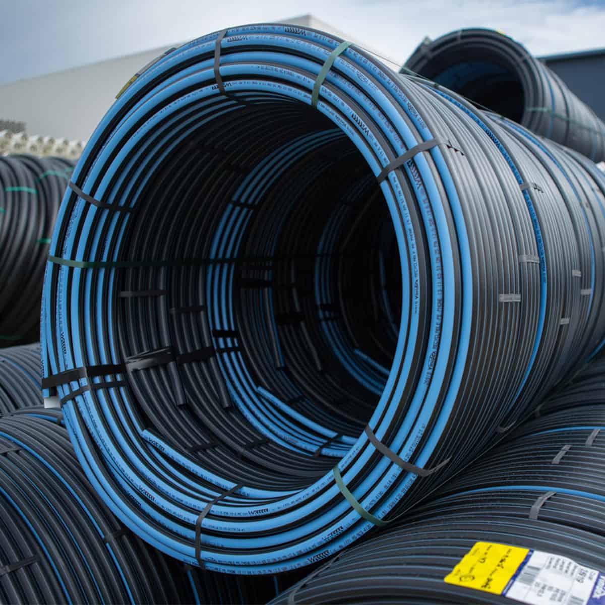 Typically identified by the blue stripe, PE pipe for drinking water applications