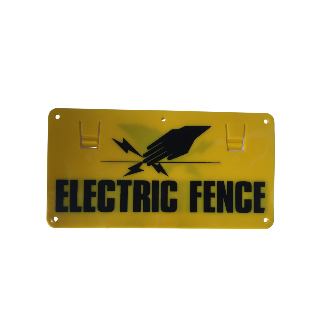 Signs clip easily to hot wire to provide a warning of electric fence operation.