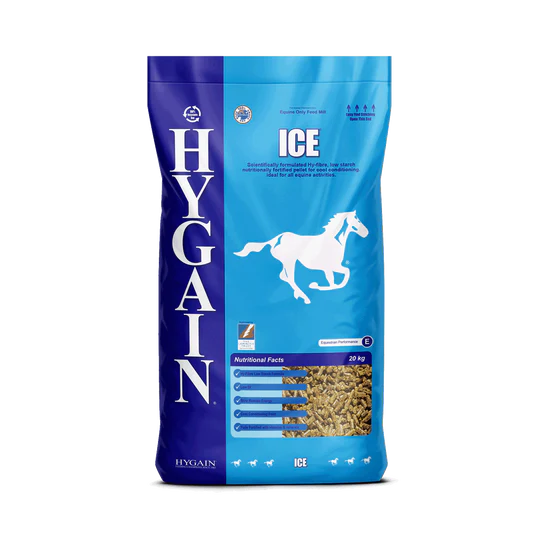 Hygain® Ice® is a high fibre, low starch, fortified pellet scientifically formulated to provide cool slow release energy for calm conditioning and healthy gut function.