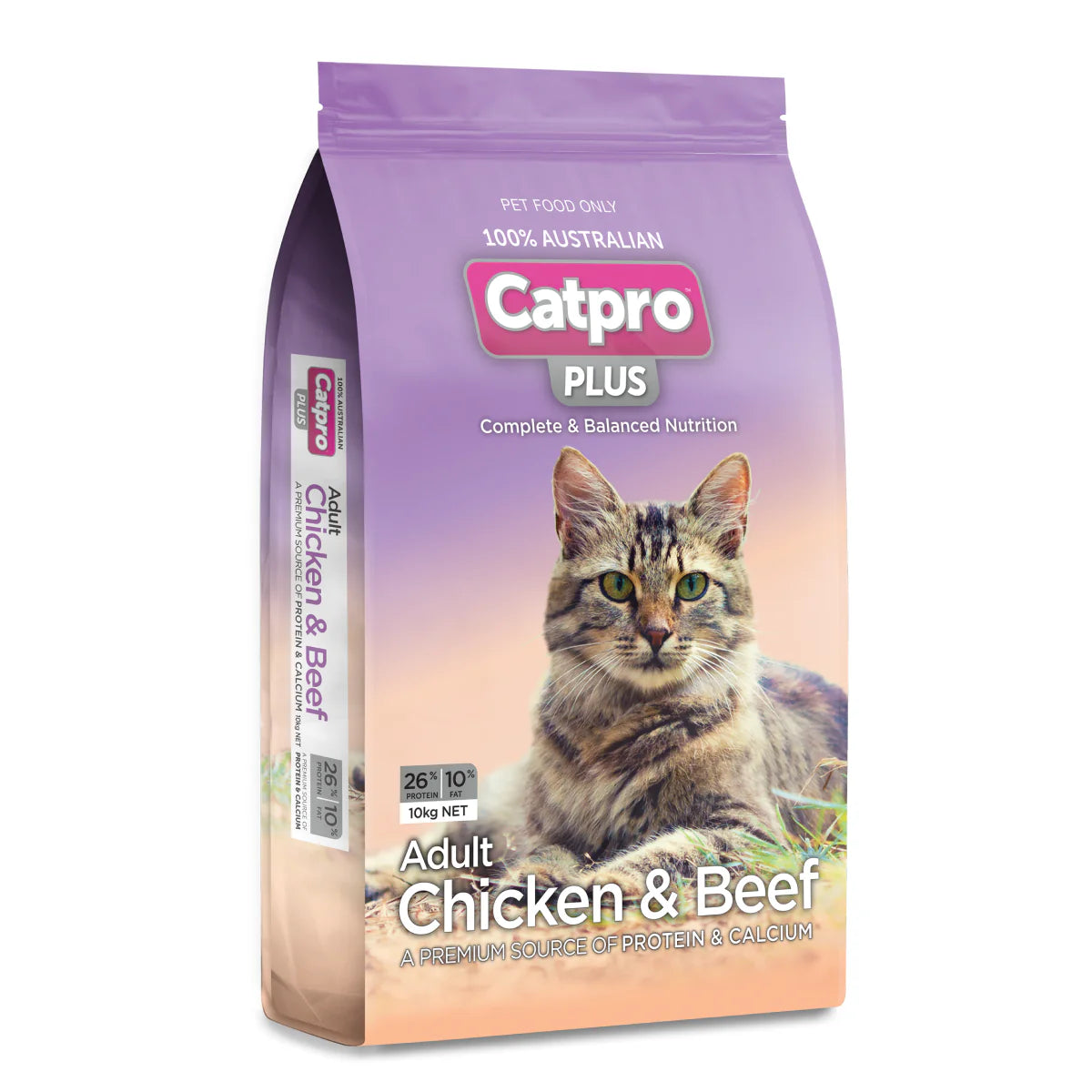 Adult Chicken & Beef A premium source of protien & calcium Satisfy your cats desires with our classic meaty feast of succulent chicken and hearty beef with a nice crunchy texture that makes meal time both delicious and nutritious. Chicken & Beef contains only the best local ingredients which are all sourced in Australia for their freshness & combined in a way to provide efficient digestion and absorption required for adult cats. contains all the body building proteins, amino acids & minerals essential for maintaining your cat’s good health & well being. contains Omega 3 & 6 fatty acids which help maintain a healthy skin & lustrous coat associated with a healthy adult cat. Whole grain cereals (wheat, corn & /or sorghum), Meat meals (chicken, beef, ovine &/or fish), Animal fats (beef, ovine &/or chicken), Poultry digest, Salt, Essential vitamins& minerals (calcium, phosphorus, magnesium, iron, copper, manganese, zinc, iodine,selenium, vitamins A, D3, E, K, B1, B2, B3, B5, B6, B9, B12, Biotin), Choline chloride, Beet pulp, Amino acids (taurine, methionine), Yucca extract, Antioxidants. No Preservatives or artificial flavours.