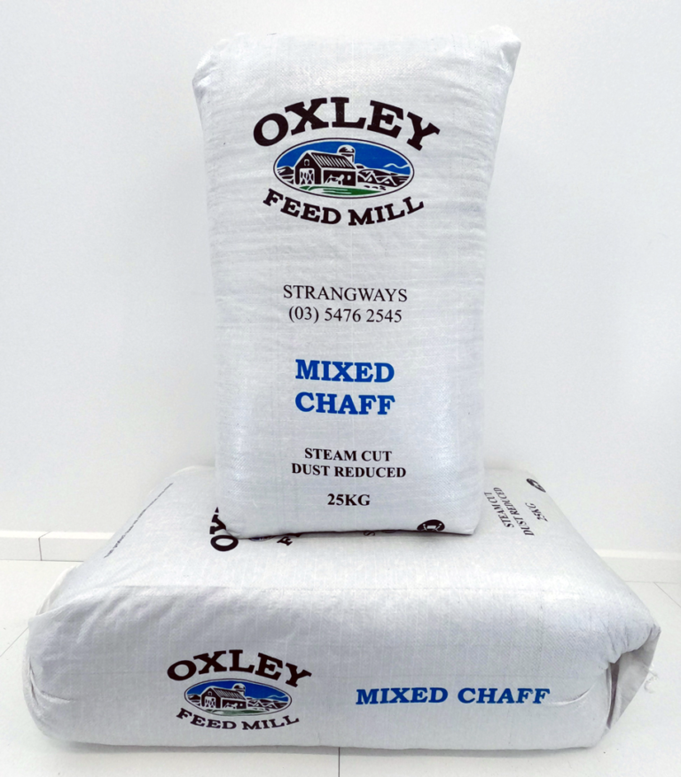 Oxley Feed Mills Mixed Chaff is a blend of freshly cut Lucerne and Oaten Chaff. Manufactured in our Chaff Mill on the banks of the the Loddon River, our master blenders take the time to make sure every bag of dust reduced chaff is hand blended to perfection. Oxley Feed Mills Mixed Chaff is a balanced dietary component of your animal’s feeding program.