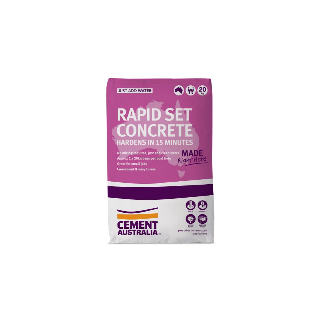 Made right here is Australia, Cement Australia's Rapid Set Concrete is specially formulated to harden rapidly, so you can complete a job faster and have more time for other projects. It is highly suitable for fixing fence and non-load bearing pergola posts, clothes hoists and many other non-structural uses.
