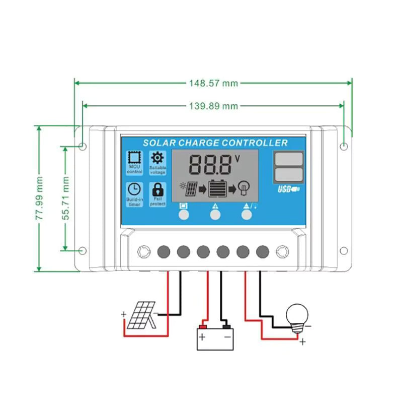 Solar Panel Regulator Charge Controller 12/24v 30A